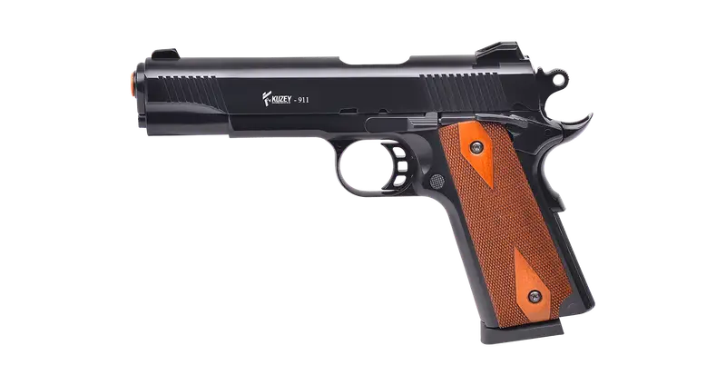 🔹 Design iconic: Inspirat de celebrul Colt 1911, cu finisaje cromate sau fumurii și mânere din lemn sau polimer texturat