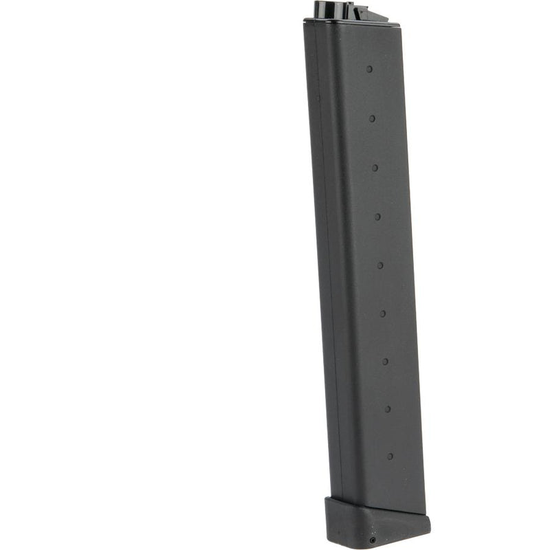 🔹 Sistem Gas Blowback (GBB) — Slide-ul metalic se deplasează înapoi la fiecare foc, simulând reculul unei arme reale și lăsând slide-ul blocat în spate când încărcătorul este gol (Last Round Hold Open).