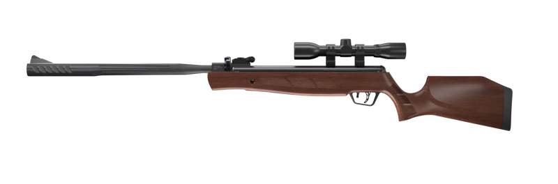 - Complectație: Lunetă 4x32 inclusă, magazie rotativă, pat sintetic ergonomic, șină Picatinny