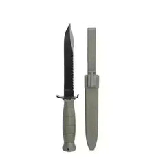 - Lamă: Oțel carbon, clip-point, cu dinți tip fierăstrău pe spate