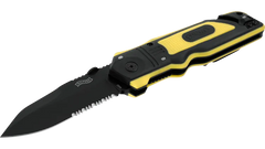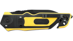 🔹 Vizibilitate sporită — Mâner din polimer (FRN) cauciucat, de culoare galben/negru, dotat cu trei inserții fluorescente pe fiecare parte, permițând localizarea și prinderea rapidă a cuțitului pe întuneric.