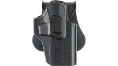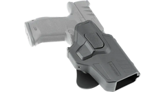 Tocul pentru pistol cu paletă Umarex este fabricat din polimer rezistent la impact și șocuri și susține în siguranță toate modelele Walther PDP datorită unui șurub de reglare fină. Arma este eliberată de un buton de eliberare ghidat cu arc. Pentru o potrivire excelentă și o poziționare individuală, unghiul de tragere poate fi reglat la 360°, iar paleta este cauciucată pe interior. Designul special al tocului permite, de asemenea, introducerea în toc a unui pistol cu PDP cu o viză montată.